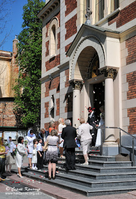 У 1901 році будівництво храму було завершене. Монументальний розвис інтер’єру здійснив у 1902 році віденський художник Карл Йобст. / The temple was built in Italian-Byzantine style. Above the entrance to the temple you can see mosaic image of blessing Christ done in 1900. The church was erected in 1901. Paintings appeared and were made by Karl Jobst (Austrian painter).